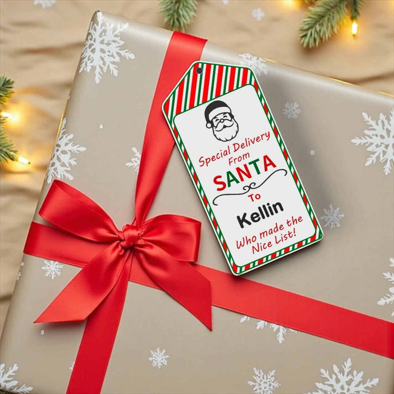 Each tag is custom printed with the name of your choice, so Santa knows exactly who’s on the nice list this year. ✨